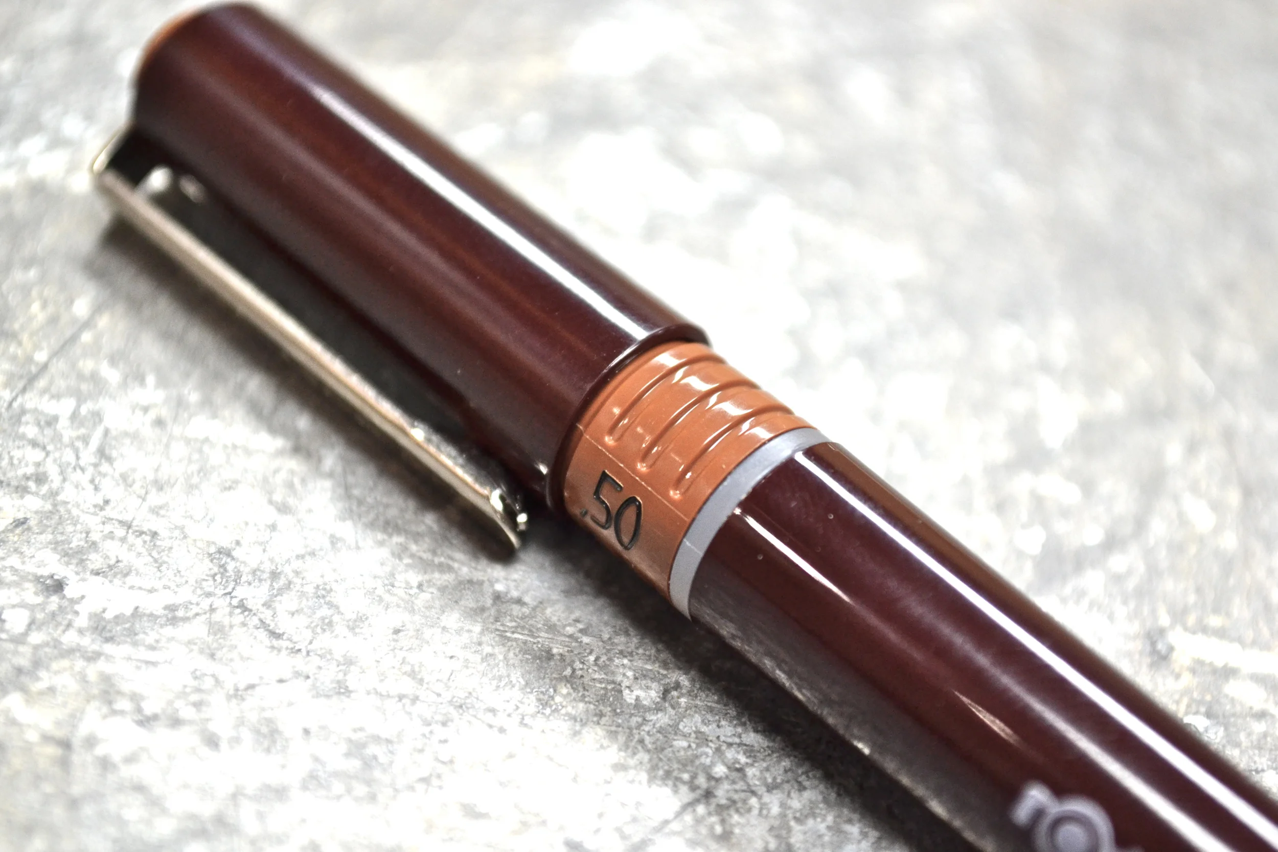 The first thing that stood out to me about this pen is how vintage it looks. The shades of brown and maroons throughout the cap and barrel, then finished off with the nice red ring down towards the base. Honestly, it looks like they haven't changed the style of this pen in 50 years, although I don't know the history. I really wish they made more pens that looked this way for normal writing; any suggestions? The look of this pen calls to me for some reason and I think it is awesome. And, while using this pen it feels like I really am using a writing "instrument".