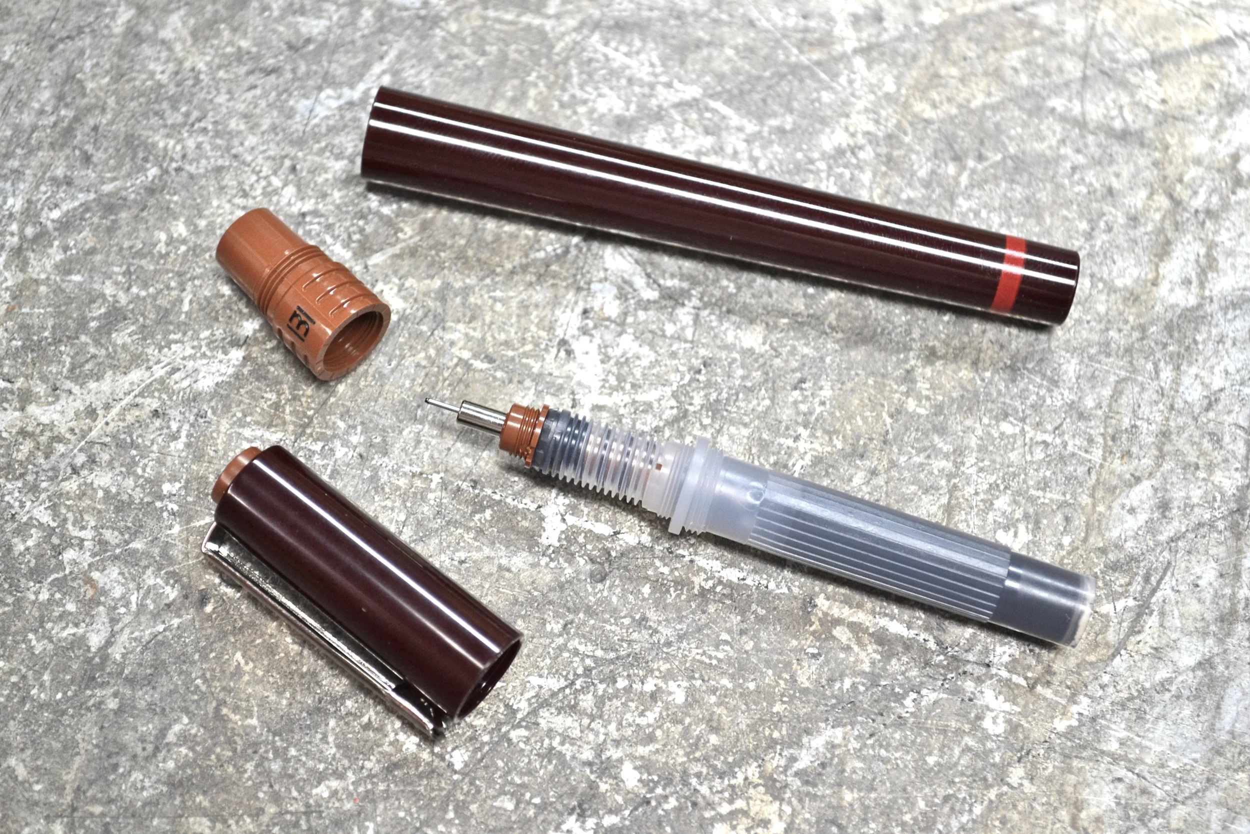 A special feature of the pen is how the ink system works. It touts what rOtring calls the capillary cartridge system which creates a new pressure seal (and equilibrium) each time a new one is installed. I'm not quite sure what all of that means, but in layman's terms it is that the ink is "good to the last drop", meaning that the tip will keep writing until the very last smidge of ink leaves the pen.