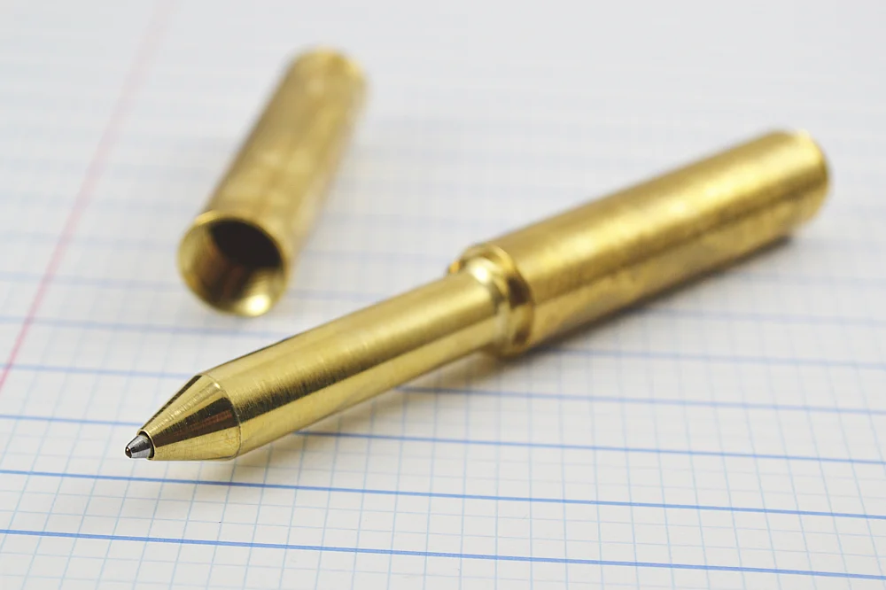 I've had the opportunity to review the pen on a few different occasions in both aluminum and titanium, but Ian recently released two new materials: bronze and brass.