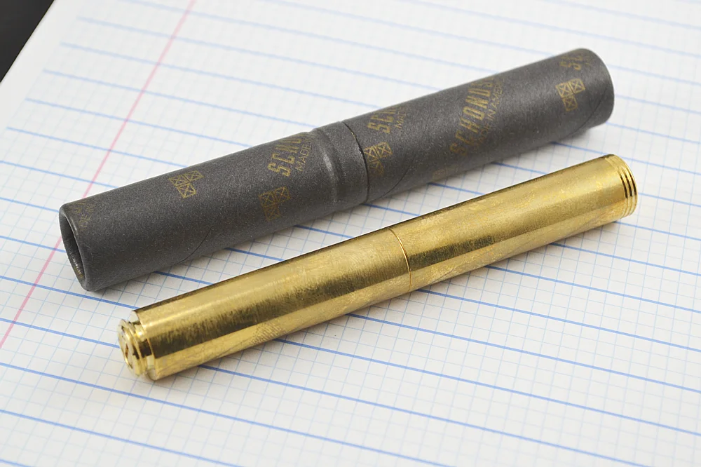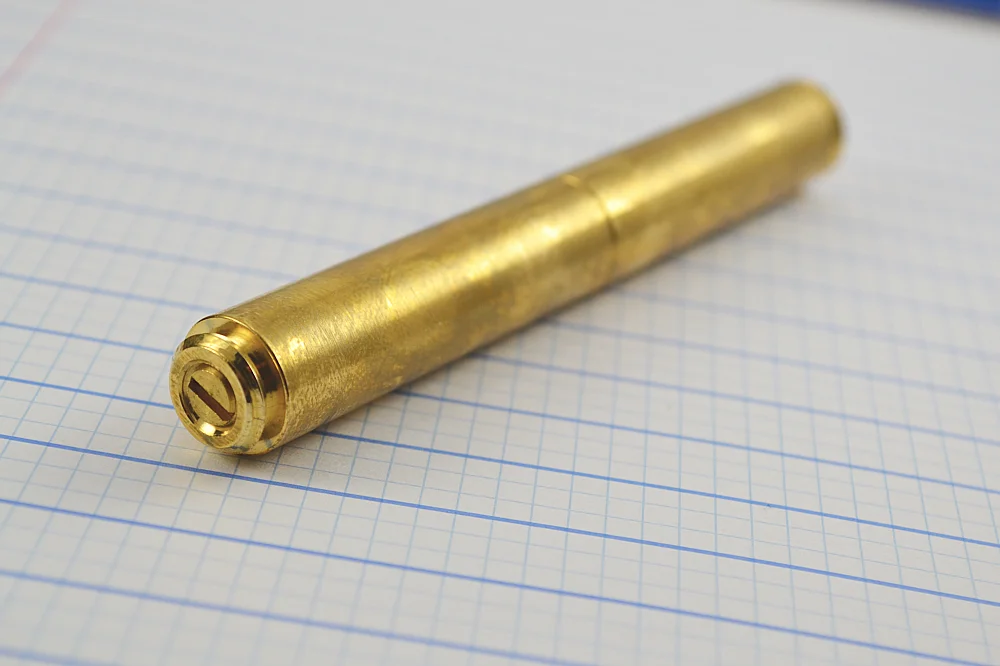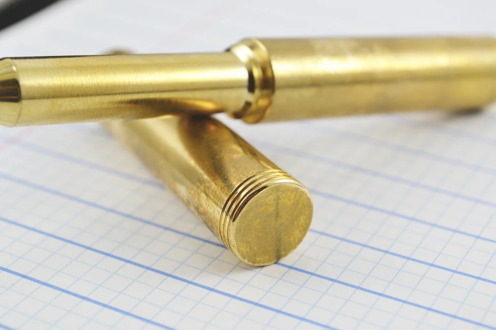 Continuing on that thread, the brass material is weighty. Coming in at 3 oz, it is a hefty pen. Personally, I enjoy the added weight, but required posting for normal writing does make it a slight on the top heavy side. Not unbearably top heavy, but noticeable.