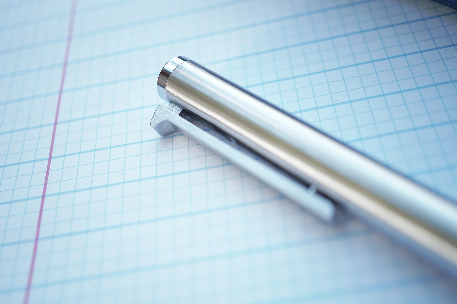 To extend the tip, the knock mechanism is built into the clip itself which is pretty clever. I really like this feature as it allowed for a much lower profile on the pocket and is a fun way to fidget with the pen. The "click" is audible and substantial (the way a true "clicky" pen should be), but don't get too carried away in a meeting.